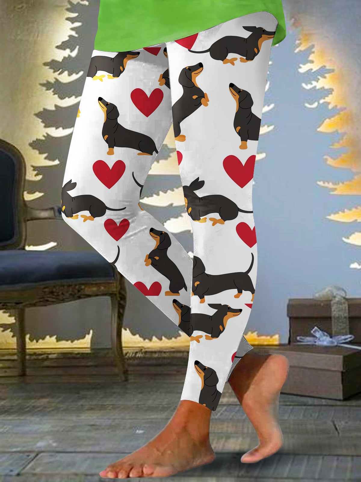 Increase quantity for Christmas Heart Dachshund Print Leggings