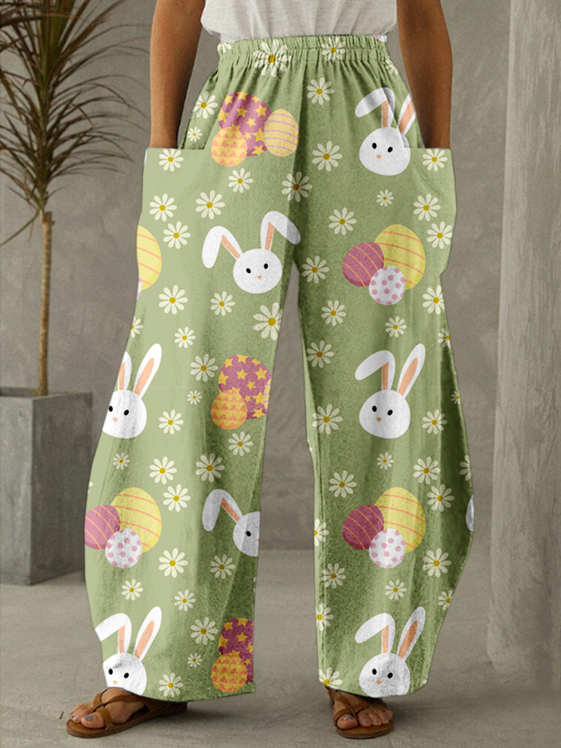 Increase quantity for Easter Cute Bunny Flowers Print Casual Pants