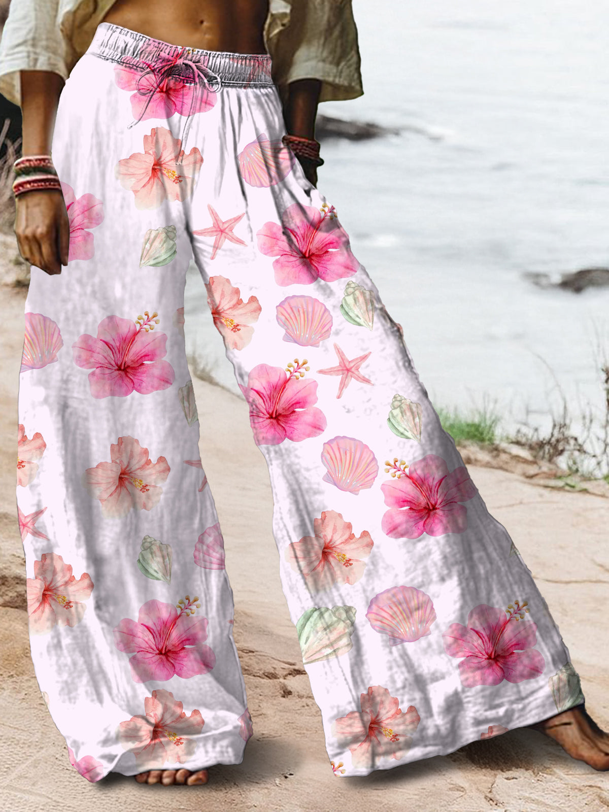 Increase quantity for Tropical Floral Conch Holiday Print Casual Pants