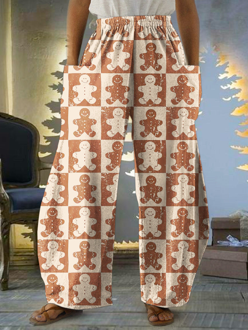 Increase quantity for Women's Christmas Gingerbread Print Casual Pants